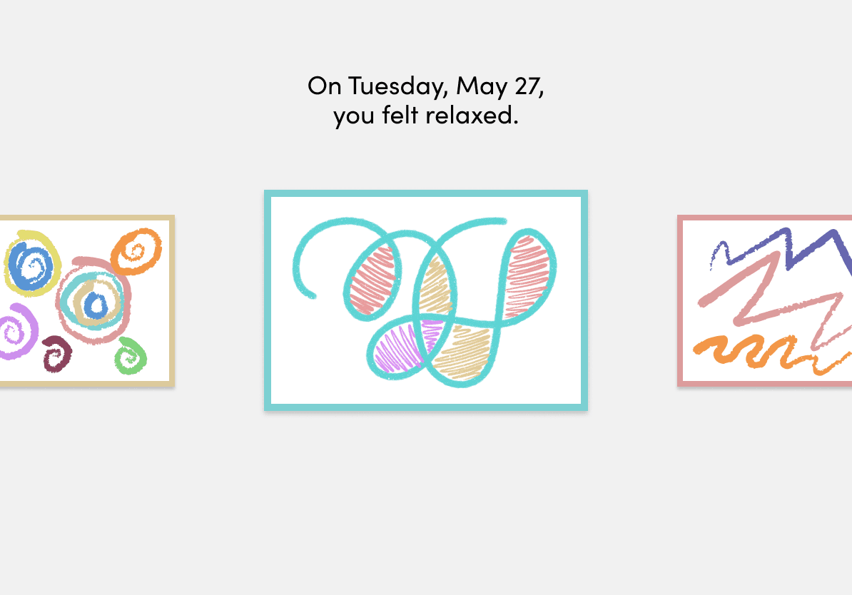 Mood tracking in young people benefits self awareness and allows them to release inner thoughts outwards. Users' creations, when not in the vault, are stored in their Mosaic: a unique and deeply personal gallery of their experiences which can be reflected on.