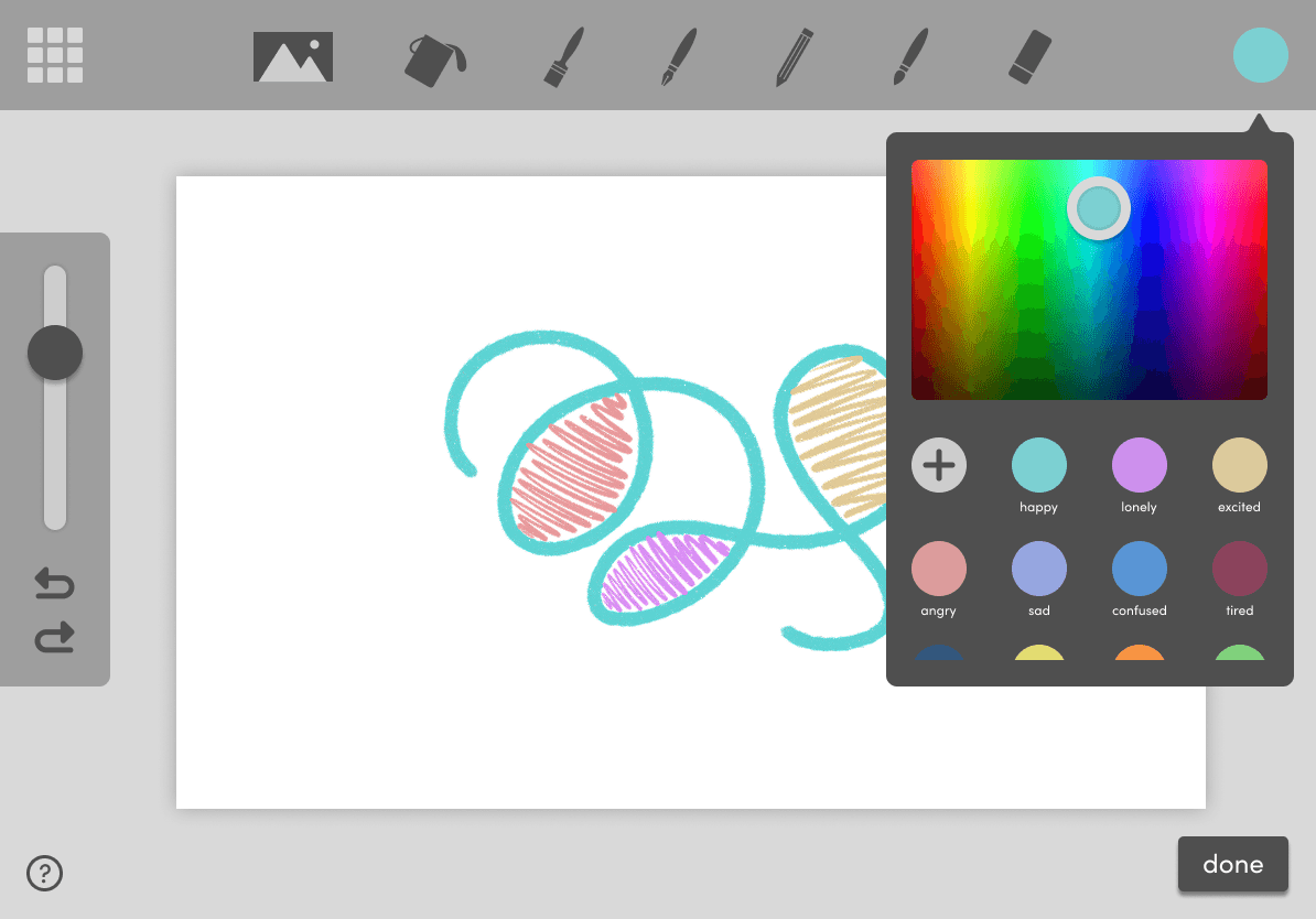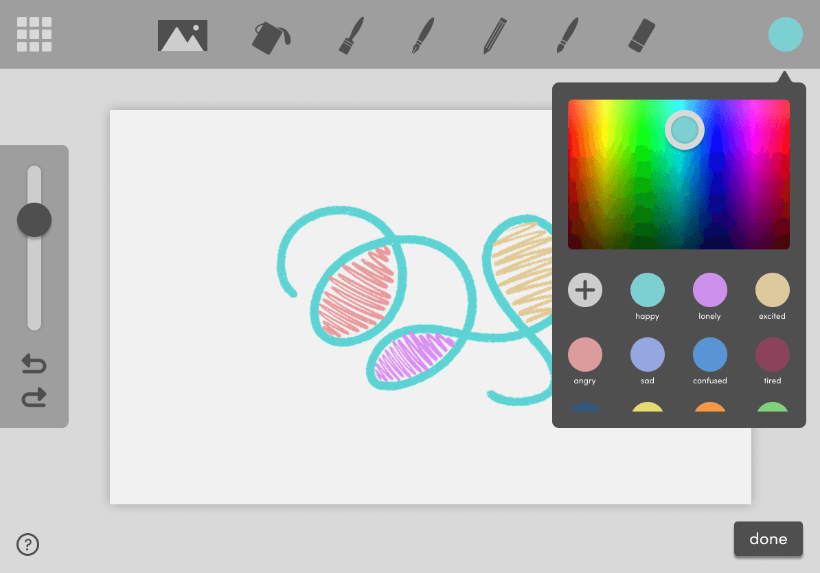 The use of colour in Mosaic is adapted from the Zones of Regulation, a framework used to sort feelings into zones to make them easier to process. Users can choose colours that represent what they are feeling to practice mindfulness of their emotions.