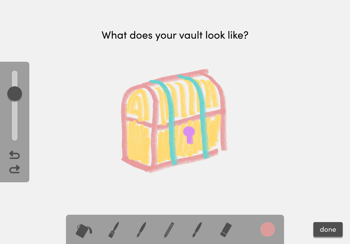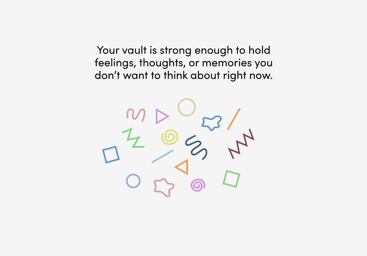 Taken directly from the commonly used therapeutic strategy called containment, users design a personalized vault to store what they wish to address at a later time to minimize feeling overwhelmed.
