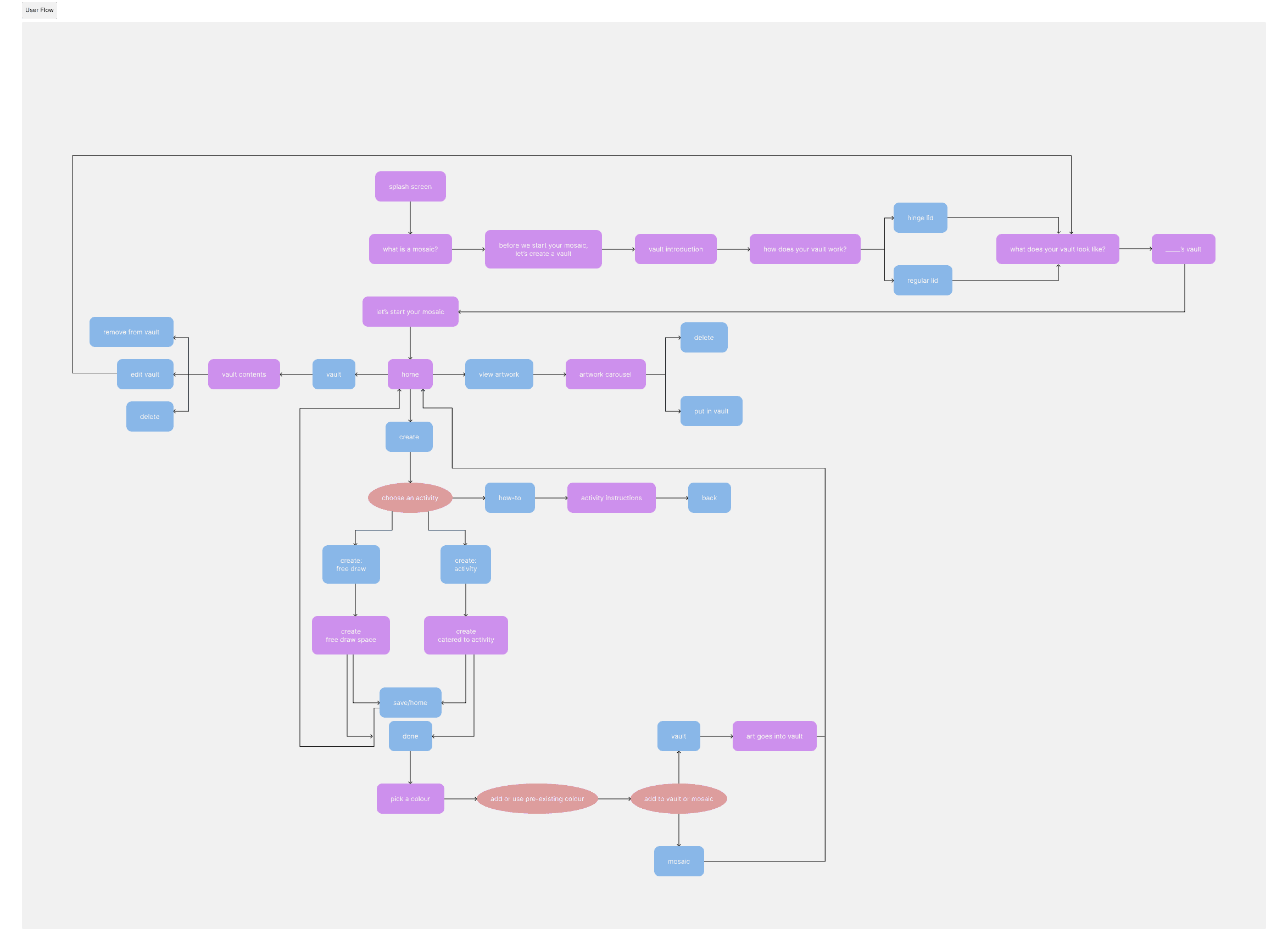 I learned so much about my research topic and spent many late nights editing the user flow diagram. My most important takeaway was learning how to define a project, problem space, and scope independently. Doing so forced me to think holistically, trust myself with decision making, and be thorough with my considerations.